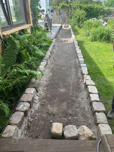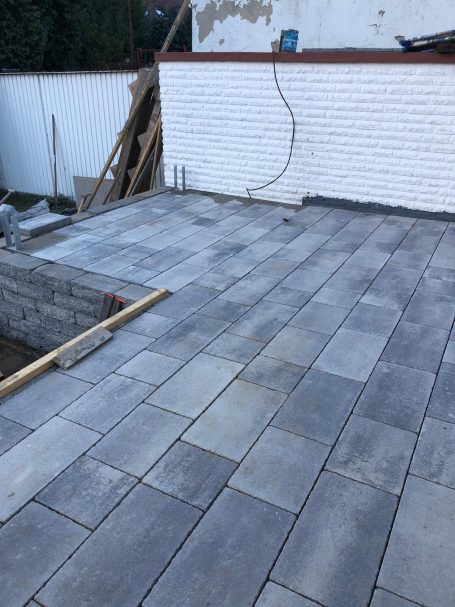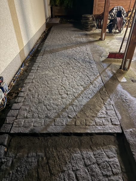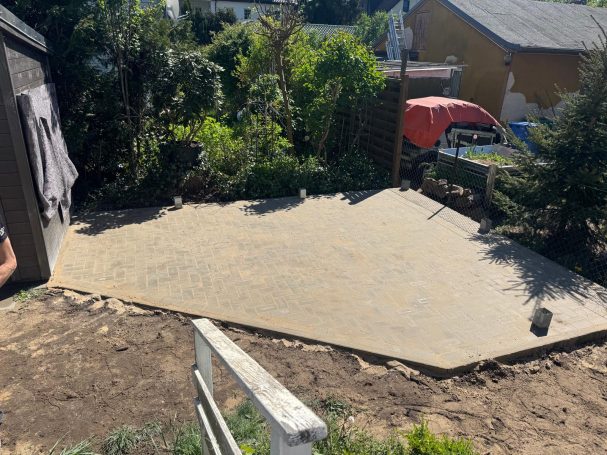 Für dieses Projekt wurde die bestehende Terrasse erweitert und ein komplett neuer Gehweg nach den Vorgaben der Kundschaft angelegt.